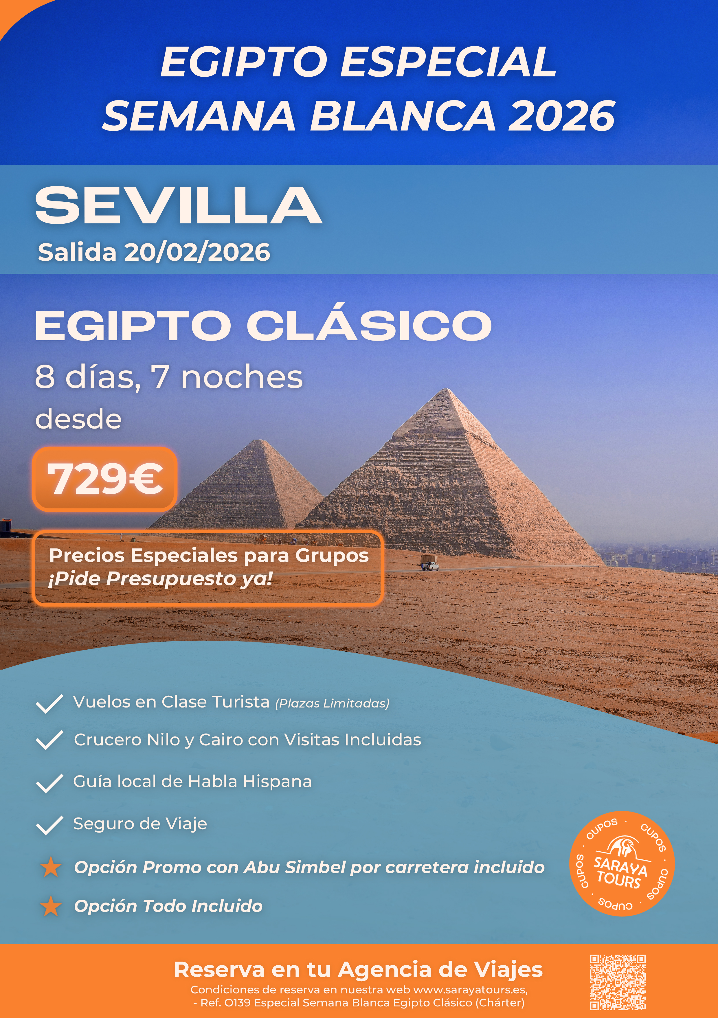Egipto Especial 8 días Semana Blanca 2026. Salida 20Feb26 desde SEVILLA. Plazas limitadas