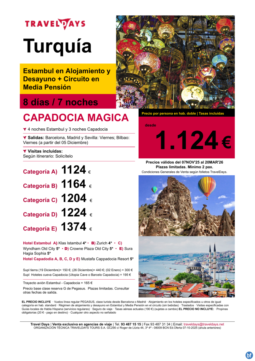 Capadocia Mágica - 8 días salidas desde BCN/MAD/BIO/SVQ a partir de 1.124€