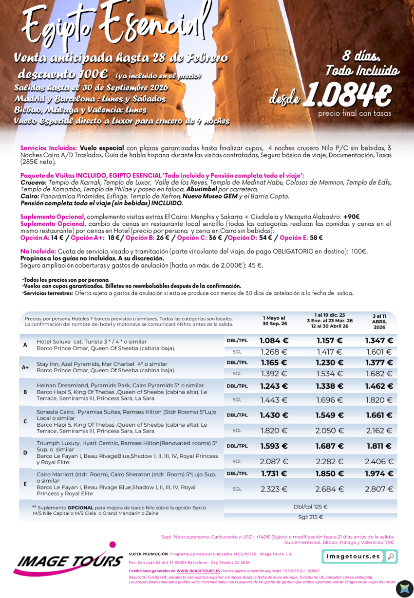 Egipto Esencial hasta sept 2026 ¡8 días con Visitas y plazas garantizadas! Venta Anticipada desde 1.084€
