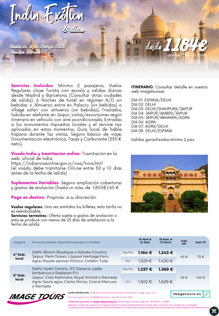 India Exótica, 8 días hasta marzo 2026 desde 1.164€