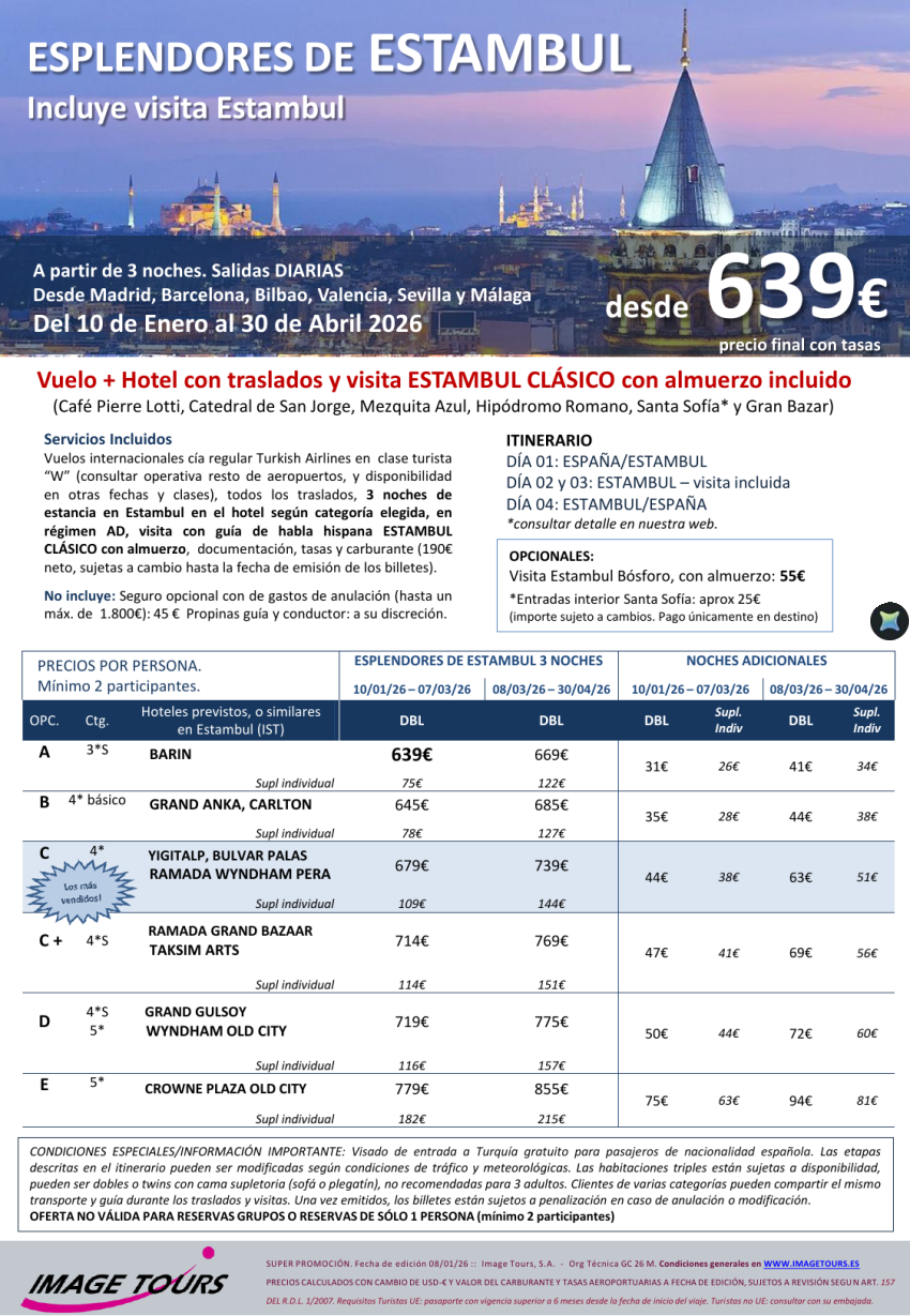 TURQUÍA: Esplendores de Estambul: vuelo, traslados, hotel y visita con almuerzo, desde 639€ hasta Abril