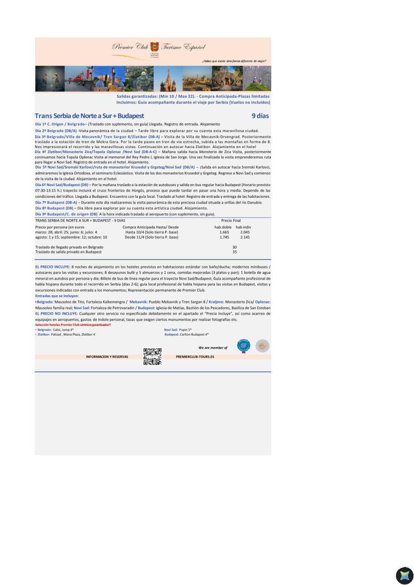 Trans Serbia de Norte a Sur + Budapest - Vuelos no incluidos - Precio desde 1.665€